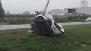 Un trágico accidente se registró en la Ruta Provincial Nº2 en Villa del Rosario, provincia de Entre Ríos, cuando un vehículo impactó violentamente contra un poste de luz, partiendo el auto en dos y causando la muerte instantánea del conductor.