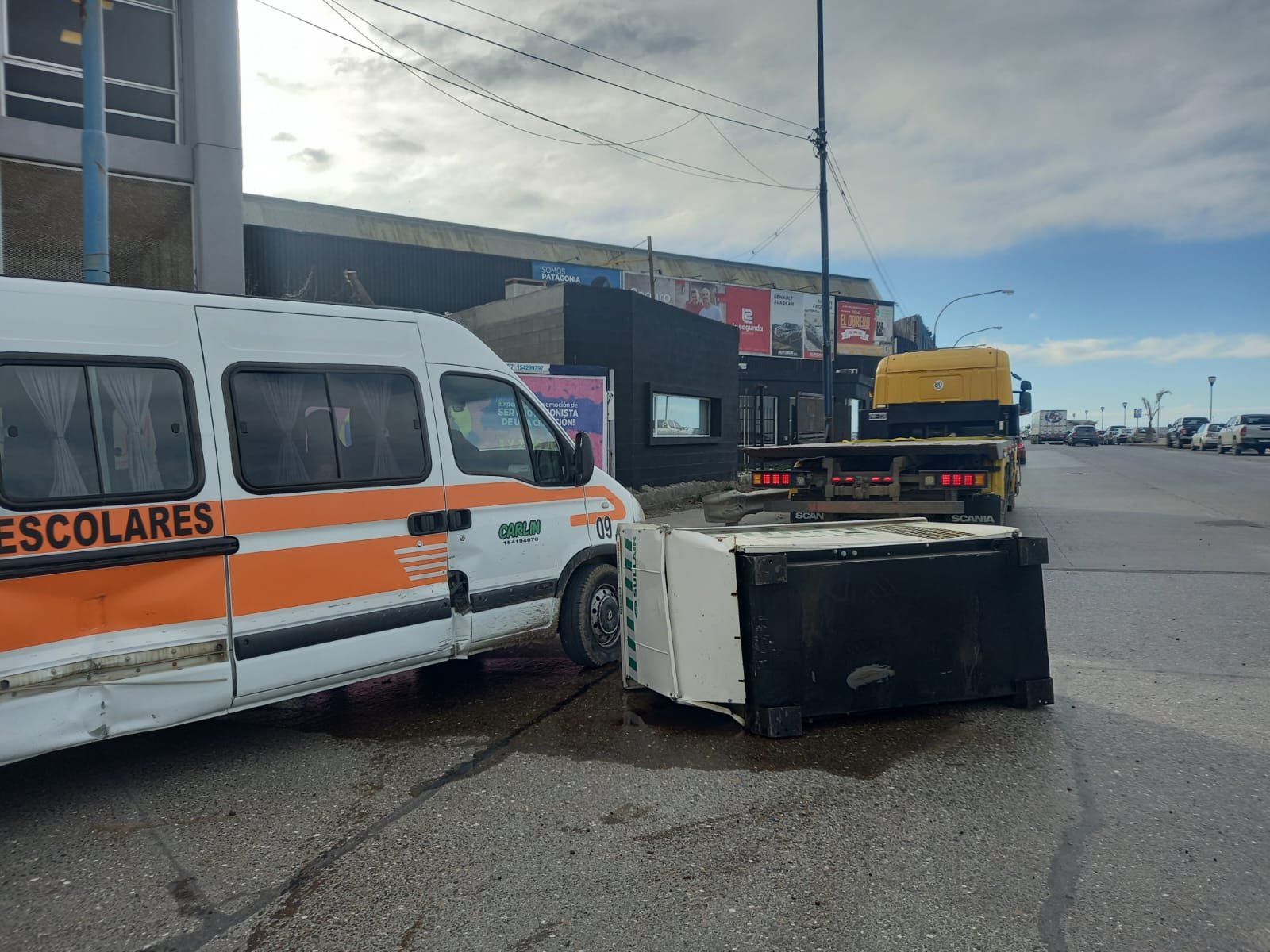 Este mediodía, un camión que transportaba un generador de corriente, que terminó cayéndose del rodado e impactando en una trafic escolar que circulaba por la Avenida Ducós.