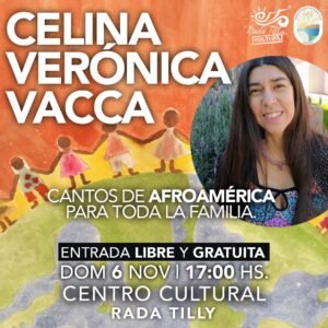 El domingo 6 de noviembre, “Cantos de Afreoamérica” llega con una propuesta para toda la familia. Con el auspicio de la Secretaría de Cultura de Rada Tilly, Celina Verónica Vacca presenta un concierto participativo que revaloriza nuestro acervo cultural afroamericano.