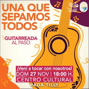 El domingo 27 de noviembre, a las 18 h. en el Centro Cultural Rada Tilly, se realizará una guitarreada al paso, sin micrófonos ni enchufes. La actividad propuesta por la Secretaría de Cultura invita a participar a todos los que «alguna vez» tocaron, los que están aprendiendo, los que saben y los que les gustaría aprender.