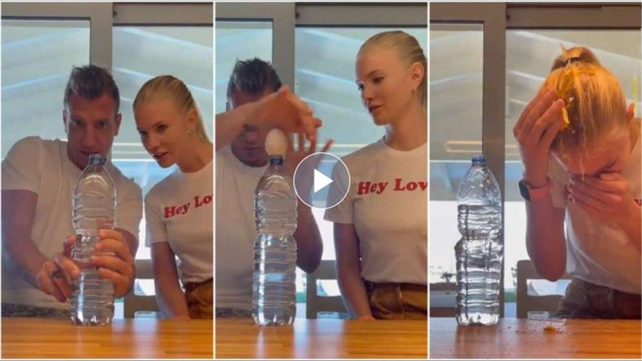 En si la acción constaba de poner un huevo sobre una botella de agua y con aparentes movimientos de magia, intentaría introducir el huevo dentro del recipiente. Sin embargo, al esconder el huevo la modelo acerca la cara para comprobar si el alimento ingresó o no a la botella, Maxi presiona y le moja toda la cara, para rematar el reto partiéndole el huevo en la cabeza.