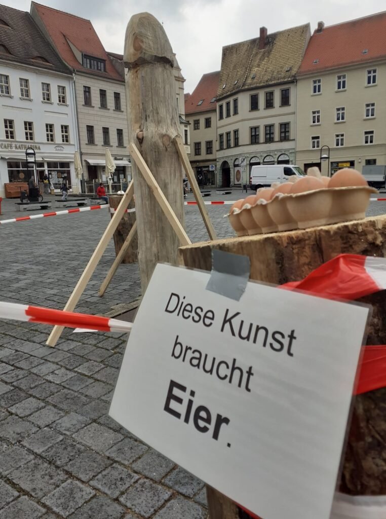 La localidad alemana de Torgau ha colocado en su plaza central, Market Square, una estatua de madera de dos metros de alto llamada ‘Espárrago’ para animar a sus habitantes a ‘mantenerse firmes’ durante esta época de pandemia de covid-19.
