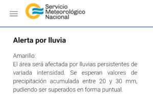 El Servicio Meteorológico Nacional (SMN) emitió un alerta amarillo por lluvias en el noreste de Chubut. Estiman acumulados entre los 20 a 30 mm.