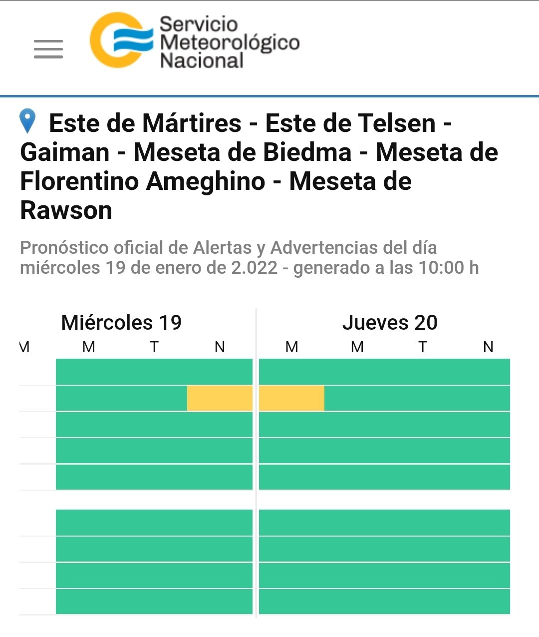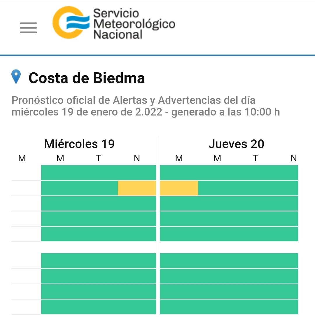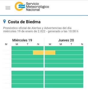 El SMN emitió un alerta amarillo para el noreste de la provincia de Chubut