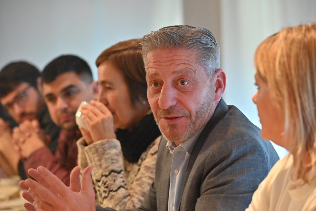 El mandatario estuvo acompañado por la subsecretaria de Información Pública, Vanesa Abril y parte del equipo de la Dirección General de Prensa. “Les deseo la mayor felicidad en este día tan especial, gracias por permitirme compartir un desayuno de agasajo, pero también de trabajo”, manifestó Arcioni en el marco del encuentro.