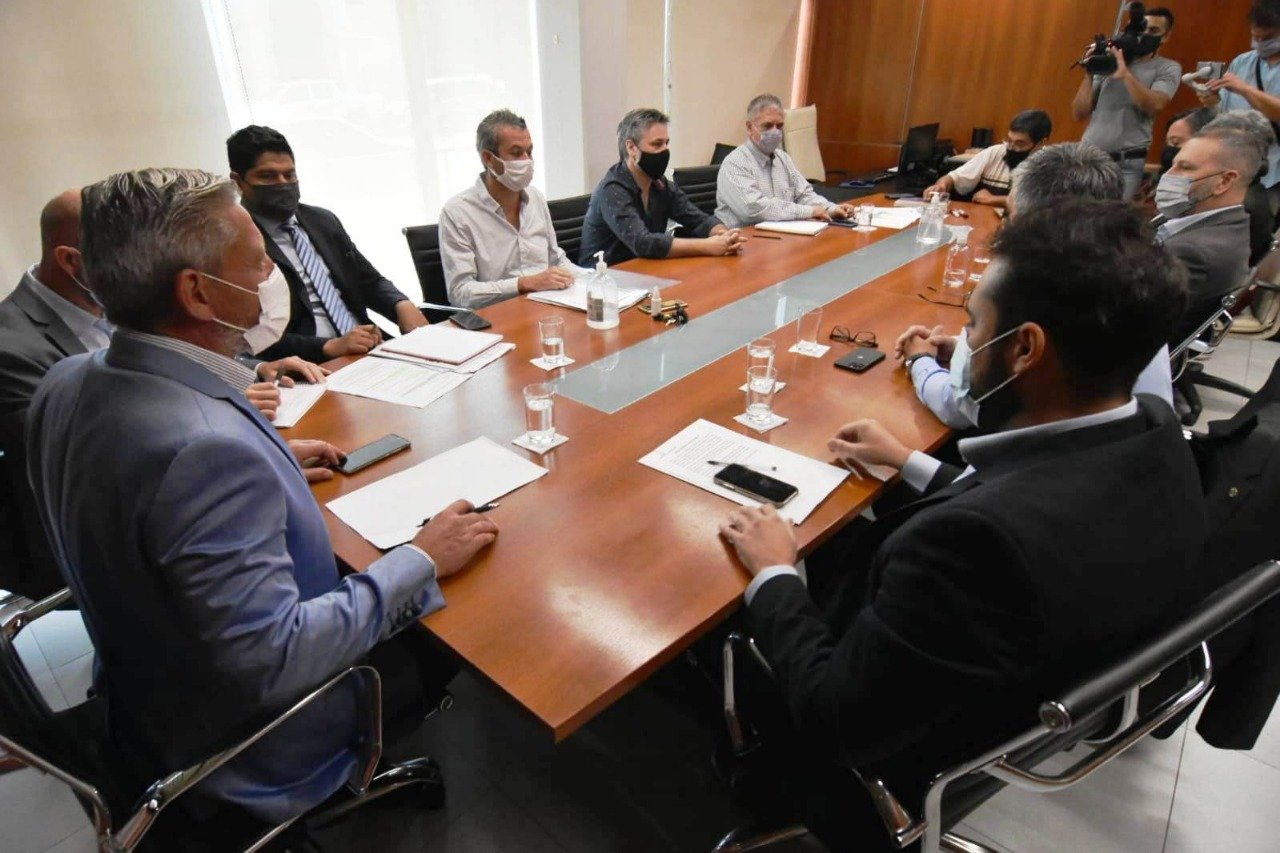 El encuentro se realizó en la Sala de Reuniones del IPVyDU, donde participaron el secretario general de Gobierno, Alejandro Sandilo, los ministros de Gobierno y Justicia, Cristián Ayala; de Agricultura, Ganadería, Industria y Comercio, Leandro Cavaco; de Infraestructura, Energía y Planificación, Gustavo Aguilera, el presidente del Instituto Provincial del Agua, Nicolás Cittadini; el presidente de la Compañía de Riego, Esteban Parra; y el titular de la Federación de Cooperativas de Servicios Públicos del Chubut, Fabricio Petrakovsky.