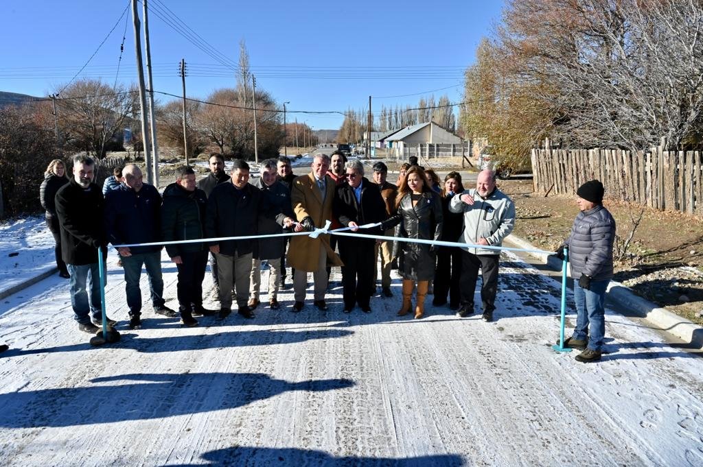 El mandatario provincial junto al jefe comunal y la comitiva inauguraron cuadras de adoquines y cordones cuneta que se ejecutaron en la localidad.