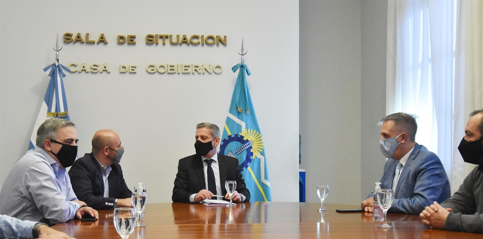 El gobernador del Chubut, Mariano Arcioni, se reunió este jueves en Sala de Situación de Casa de Gobierno con miembros de su gabinete y el vicegobernador, Ricardo Sastre, para abordar los detalles de las reuniones mantenidas en Buenos Aires.