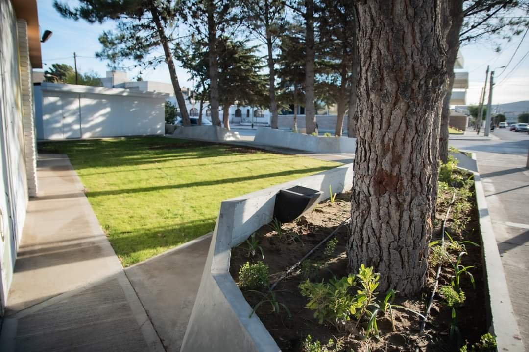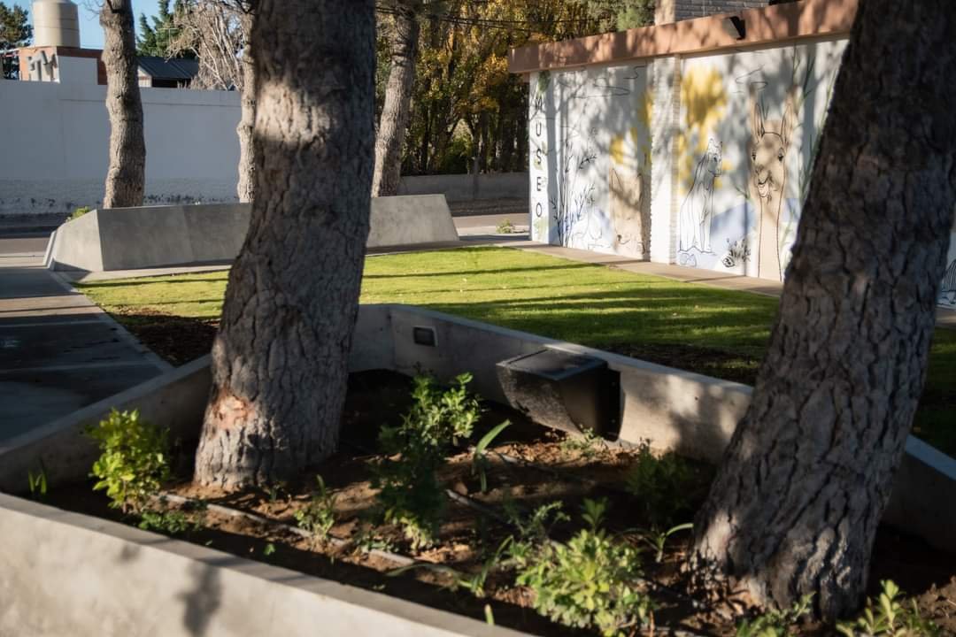La obra incluyó la construcción de cercos, veredas, incorporando tomas con adaptadores USB para la carga de celulares. Además colocaron canteros de hormigón en ángulos que cumplen la doble función de bancos.