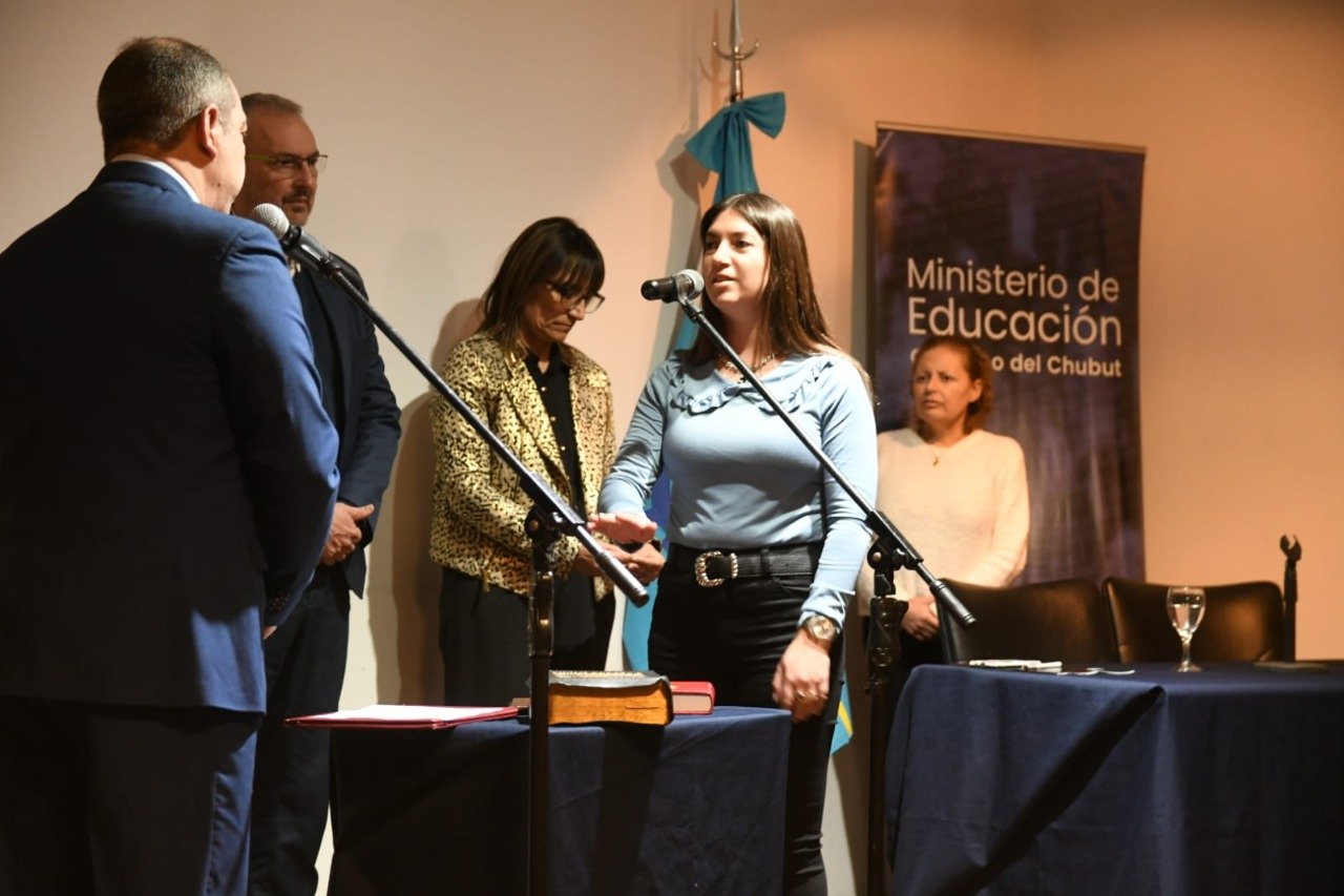 El acto de asunción, contó con la presencia de los ministros de Infraestructura, Gustavo Aguilera; de Salud, Fabián Puratich; y de Seguridad, Miguel Castro; la subsecretaria de Política Gestión y Evaluación Educativa, Laura Longo; el jefe y subjefe de la Policía del Chubut, Cesar Brant y Juan Cruz Campos, respectivamente, directores, coordinadores y referentes de los programas Educativos del Ministerio; además de familiares y amigos.