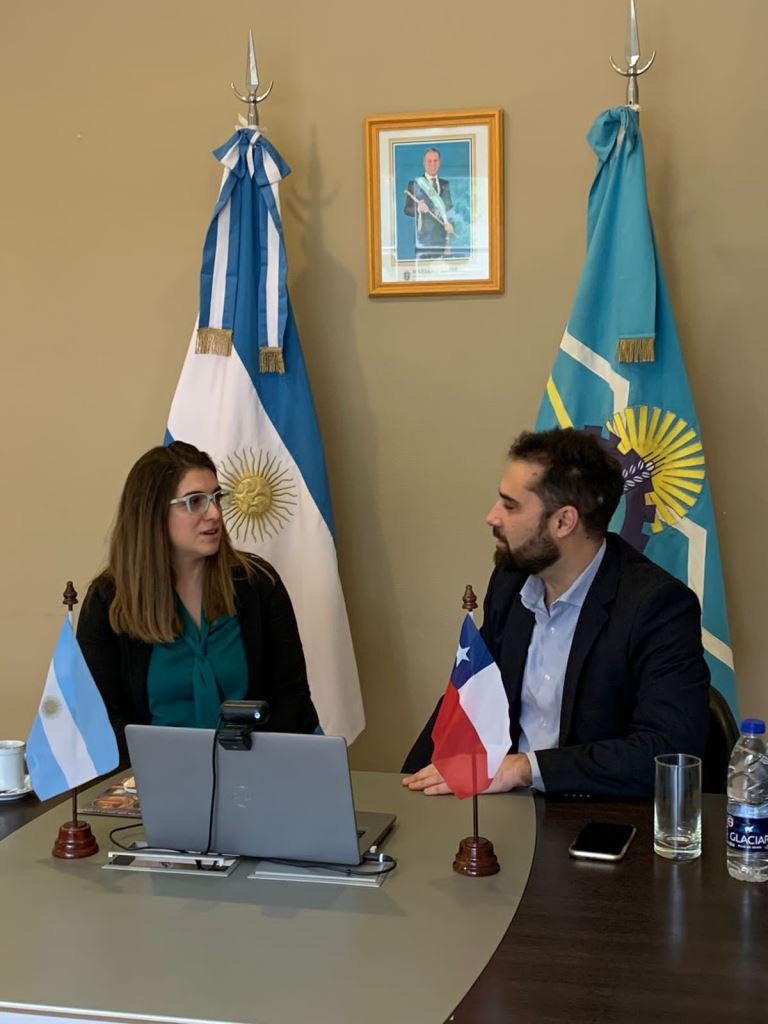 En representación del Gobierno del Chubut, el ministro de Agricultura, Ganadería, Industria y Comercio, Leandro Cavaco, y su par de Turismo y Áreas Protegidas, Leonardo Gaffet, mantuvieron un encuentro de trabajo con la representante diplomática de Chile en Comodoro Rivadavia, Valentina Mora Pérez; responsables de la empresa DAP Líneas Aéreas, y del Ente Comodoro Turismo, con el fin de gestionar mejoras en la conectividad aérea en la región.