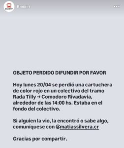 La persona que realizó el pedido solicitó la colaboración de quienes hayan viajado en ese horario o puedan aportar información sobre el paradero de la cartuchera. En caso de haberla visto o encontrado, se pidió comunicarse a través de redes sociales con el usuario indicado en la publicación original.