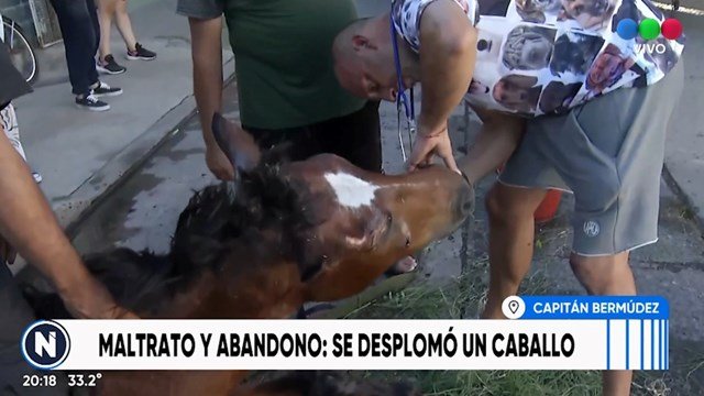 Los vecinos de Capitán Bermúdez fueron testigos del desplome de un caballo en Santiago al 800. Con claros signos de maltrato de larga data, según testimonios recopilados por Telefe, el caballo pertenecía a un delincuente que en la noche de ayer robó una verdulería.