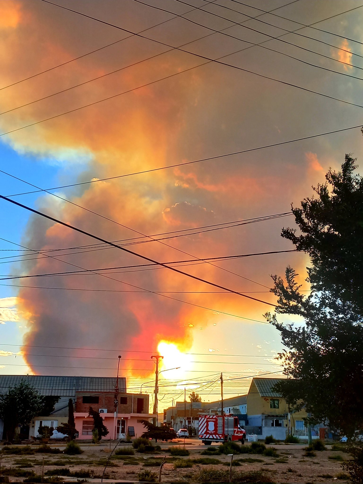 Por las dimensiones del siniestro, la columna de fuego es visible desde algunos puntos de Comodoro Rivadavia