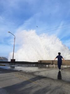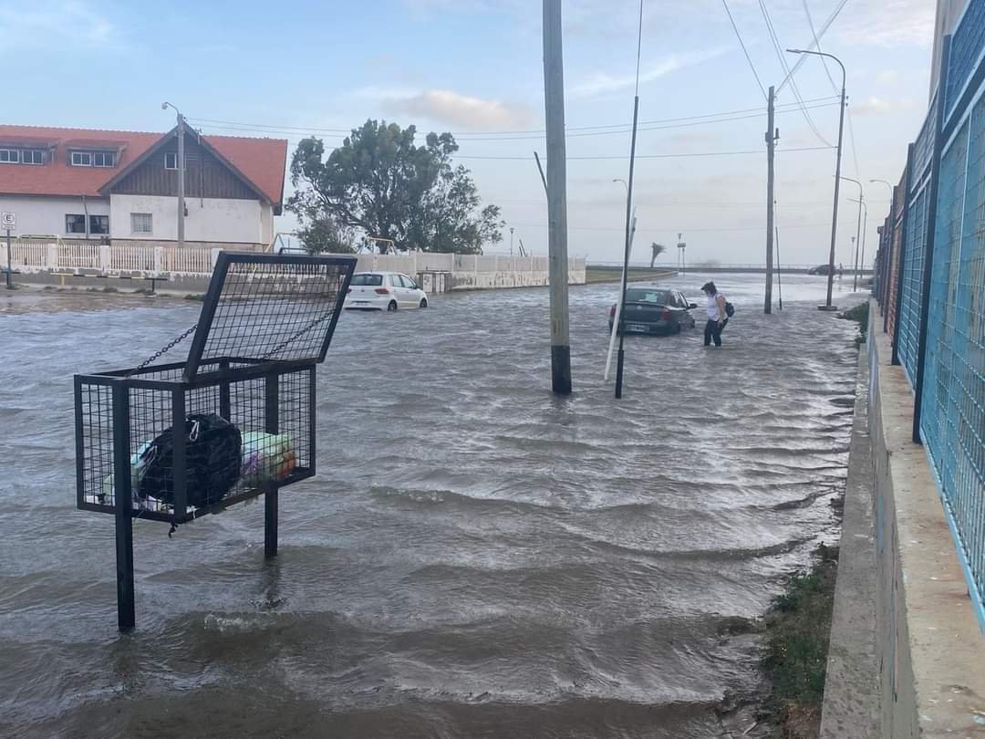 Pero el viento del sudeste no sólo trajo consigo una caída de la temperatura, sino que provocó una «sudestada» que terminó con agua de mar en las calles céntricas de la costanera.