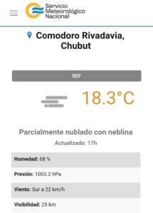 El termómetro siguió avanzando según pasaron las horas, y a las 15hs según datos oficiales publicados en la página web del SMN el termómetro había alcanzado la máxima informada por el portal de noticias meteorológicas Clima-Comodoro, unos 31.3°C.