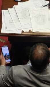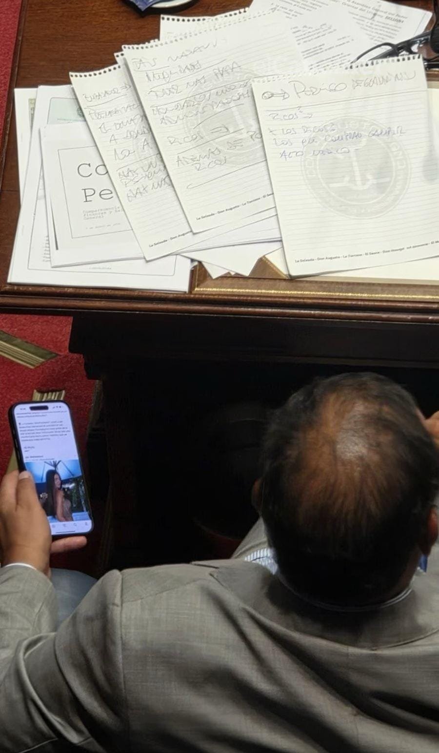 Luego, en declaraciones al periodista Leonardo Sarro, explicó la imagen que se hizo viral suya mirando una foto de Zaira Nara: “Por suerte miro a Zaira Nara y no miro… Estaba scroleando, pero bueno… Mientras siga en el Partido Nacional yo no voy a discutir con un compañero”.