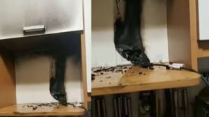 Carmen Barbieri mostró cómo quedó el mueble donde tenía el horno eléctrico. (Foto: captura de Ciudad Magazine)