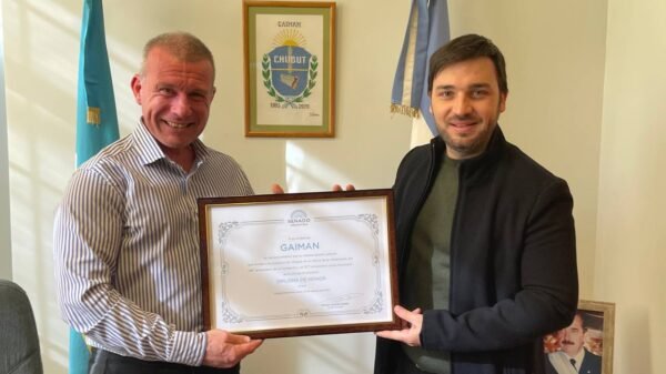 El senador chubutense Ignacio “Nacho” Torres visitó Gaiman, donde entregó un reconocimiento por su aporte cultural a la provincia en conmemoración del 148° aniversario...