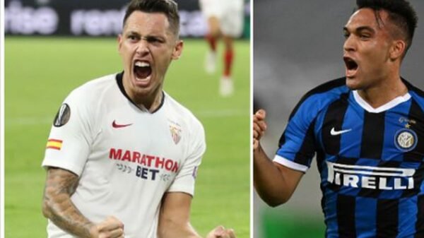 Inter, de Italia, con el delantero argentino Lautaro Martínez, y Sevilla, de España, con sus compatriotas Ever Banega y Lucas Ocampos como titulares, más...