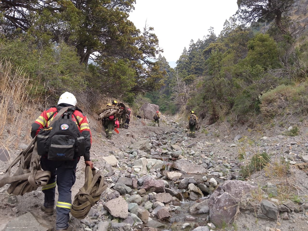 De las tareas que se están llevando adelante participan brigadistas de las bases de Trevelin, Esquel, Lago Rosario, Corcovado y Carrenleufú, como así también una dotación de bomberos voluntarios de la región y personal proveniente del ICE del Parque Nacional «Los Alerces».