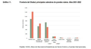 Según datos del Instituto Nacional de Estadística y Censos (INDEC), la Provincia del Chubut exportó 2.575 millones de dólares en 2022, con un crecimiento de 10,1% respecto al 2021 a nivel nacional. La región patagónica ocupó el segundo lugar, con exportaciones por 8.573 millones de dólares en 2022, 9,7% de las exportaciones totales, con una suba de 42,1% respecto al año anterior.