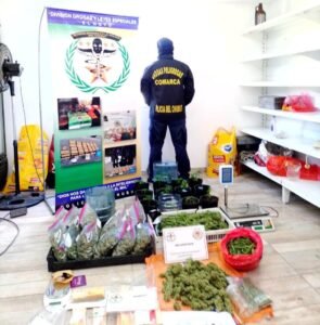 En total, se incautaron 6,400 kg de cogollos de cannabis que estaban dispuestas en 12 bolsas mientras que las otras sustancias se encontraban en otro proceso de secado. Además, se secuestraron 57 plantines, 566 semillas de cannabis, un teléfono celular, 2 balanzas, una elevada suma de dinero en moneda nacional y en dólares y otros elementos de interés para la investigación en marcha.