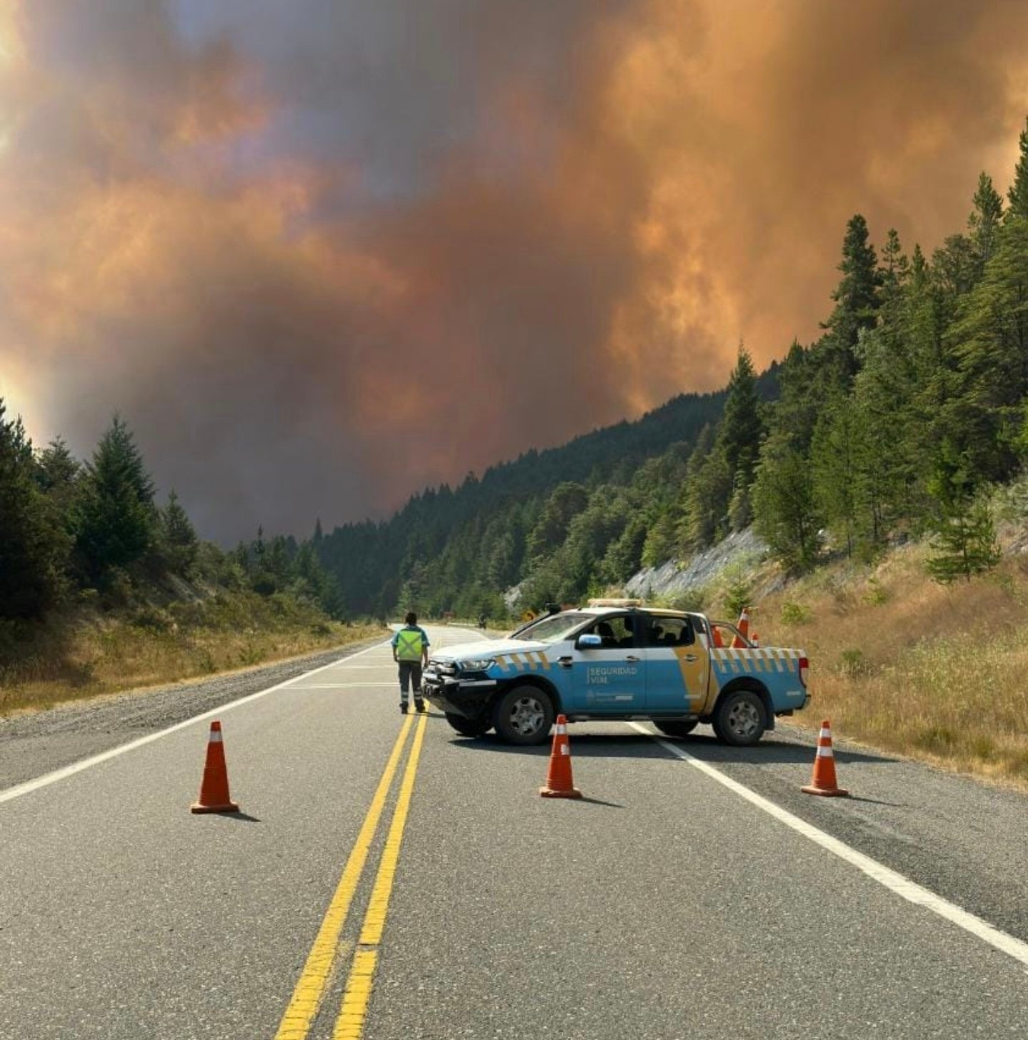 Las autoridades dispusieron este jueves un operativo especial en la Ruta Nacional 40, en el tramo que une Epuyén con El Hoyo, debido a la proximidad del incendio forestal a la traza vial. La circulación permanece restringida para todo tipo de vehículos hasta nuevo aviso.