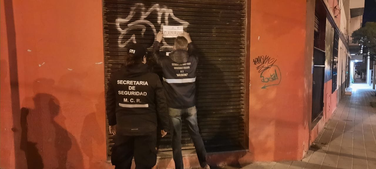 Los uniformados se presentaron en conjunto con personal de municipalidad para clausurar el boliche «El Bloque» ubicado entre las calles Alem y Ameghino,.