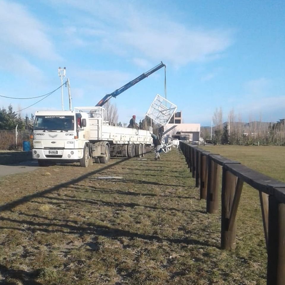 El «Coiron» en el día de ayer se descargaron 8 torres de iluminación que se va a colocar en la cancha Nº2 , buscando mas comodidades para todos los jugadores y jugadoras que practican Rugby y Hockey en la institución de Astra.