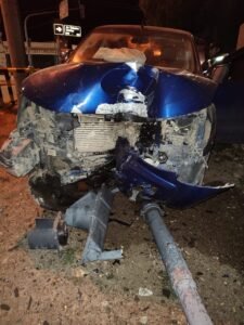 En horas de la madrugada de este sábado, una camioneta chocó a un semáforo de la Av. Estados Unidos en la zona sur de Comodoro Rivadavia. El conductor no fue hallado en el lugar del accidente.