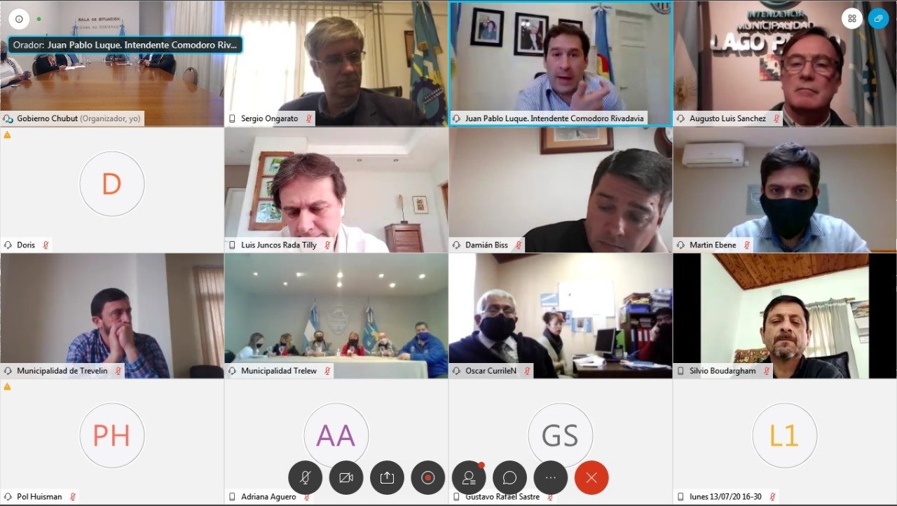 Funcionarios del Gobierno del Chubut, que integran el Comité de Emergencia, mantuvieron este martes desde Sala de Situación de Casa de Gobierno, en Rawson, una reunión por videoconferencia con Intendentes de la Provincia para brindar información sobre los alcances de la prórroga del Decreto de Necesidad y Urgencia (DNU) N° 794.