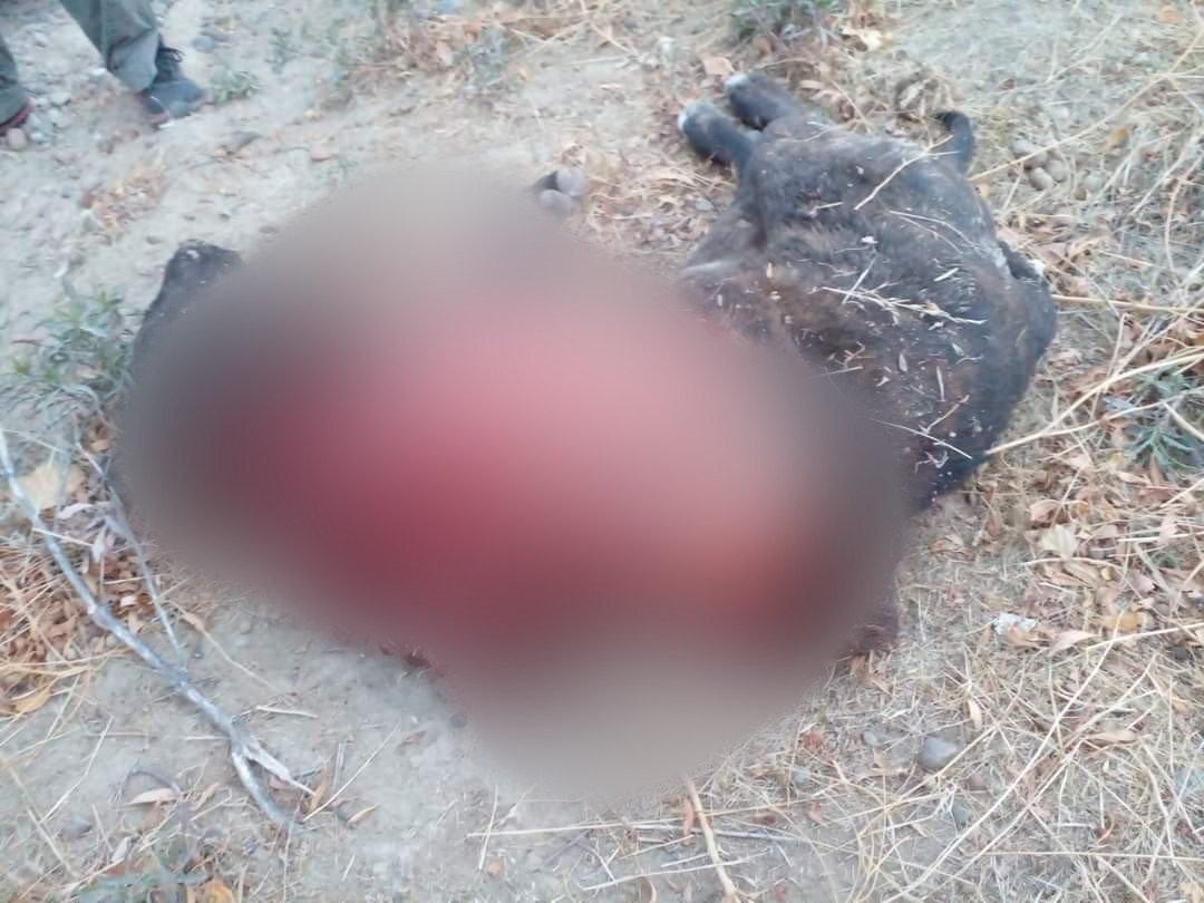 Según la usuaria Naty Rojas, en horas de la tarde del jueves encontró al animal sin vida, despellejado y aparentemente sin un brazo en un descampado de Km 17 de Comodoro Rivadavia.