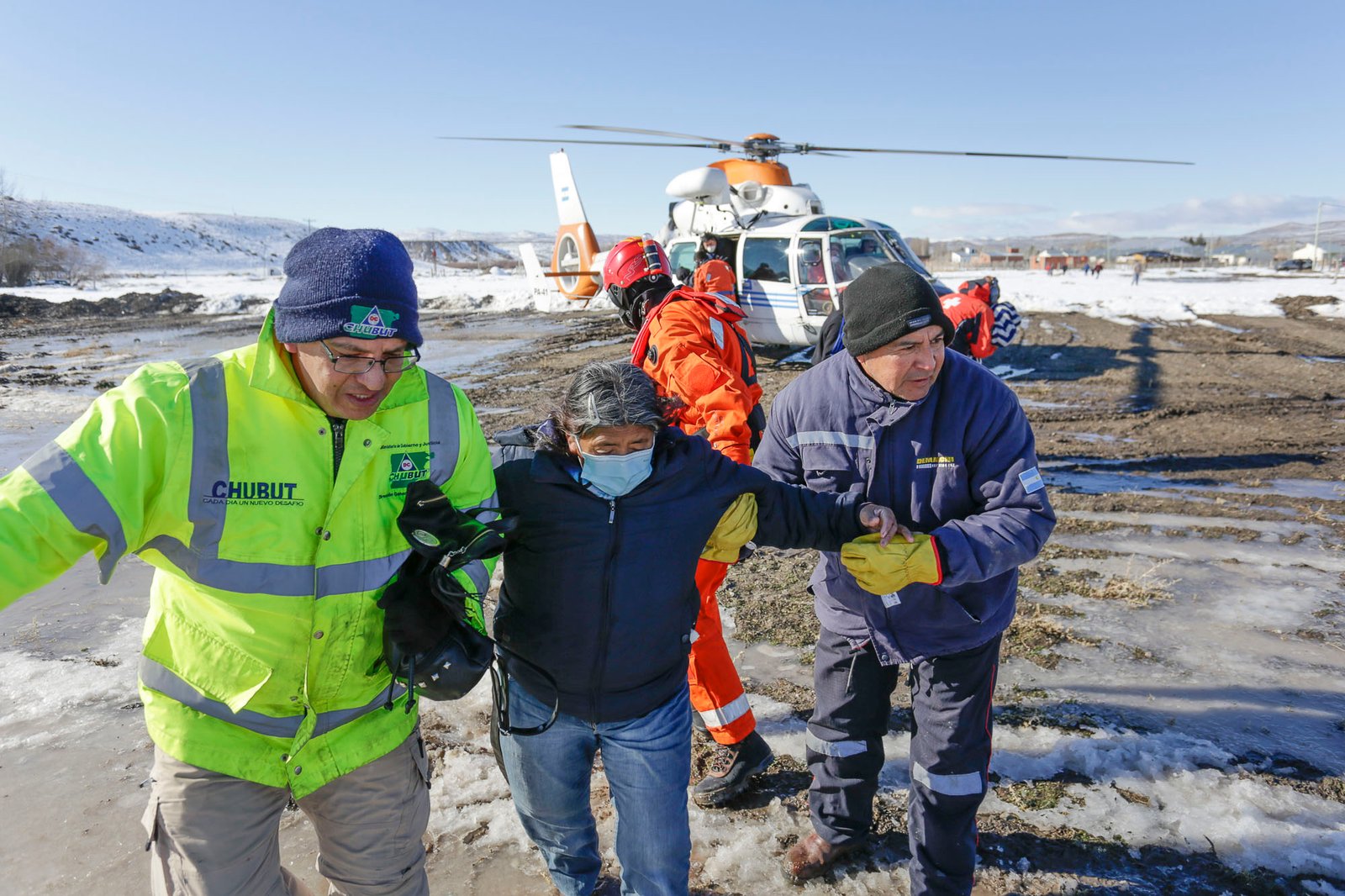 La confirmación la brindó el subsecretario de Asuntos Municipales, Luis Aguilera, y el director general de Defensa Civil, José Mazzei, quienes detallaron que “en el sobrevuelo que efectuamos esta tarde en la zona de Colonia Cushamen se logró rescatar a una familia, de apellido Herrera, integrada por un matrimonio, su hija y un bebé de 8 meses”.