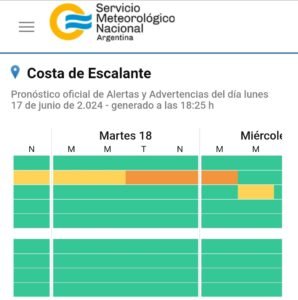 El Servicio Meteorológico Nacional (SMN) anunció a través de su sistema de alerta temprana, un alerta amarillo por fuertes lluvias en el aglomerado Comodoro-Rada Tilly. Aunque en las últimas horas subió el nivel del alerta a color naranja.