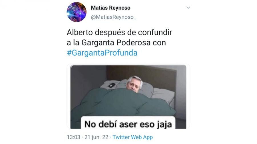 El Presidente confundió la revista «Garganta Poderosa» con «Garganta Profunda» y en las redes sociales no le perdonaron la equivocación, al contrario, los usuarios inundaron la internet de memes sobre el tema.