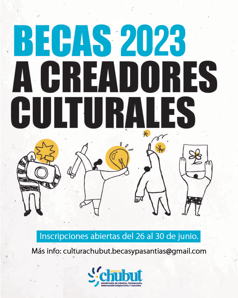El periodo de postulación será del 26 al 30 de junio. Para más información visitar  https://cienciaycultura.chubut.gov.ar/becas-creadores/