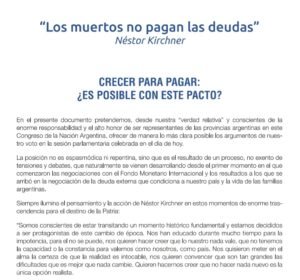 «A pesar de nuestra voluntad de honrar las deudas, sabemos que ajustar a los sectores de ingresos medios y bajos es por definición contraproducentes con los propios objetivos de crecimiento económico», indicaron.