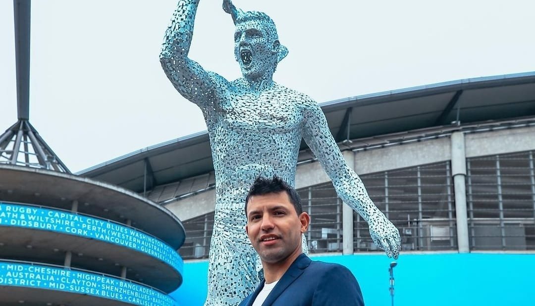 El exfutbolista argentino Sergio «Kun» Agüero fue homenajeado hoy con la inauguración de una estatua en la puerta del Etihad Stadium del Manchester City al cumplirse una década de la conquista del primer título en la Premier League del equipo inglés.