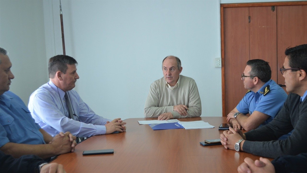 El ministro de Seguridad del Chubut, Miguel Castro, y el subsecretario, Rubén Becerra, mantuvieron una reunión con el jefe de la Policía, César Brandt; el subjefe, Juan Cruz Campos; y los Directores que componen la Plana Mayor.
