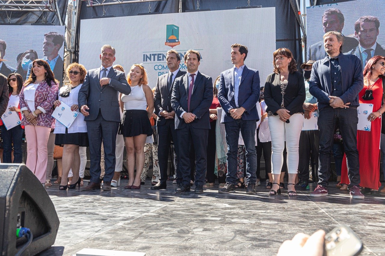 Acompañado por el ministro del Interior de la Nación, Eduardo “Wado” de Pedro; el presidente de la Cámara de Diputados, Sergio Massa; el diputado nacional Máximo Kirchner, el gobernador Mariano Arcioni, y su gabinete, Luque entregó subsidios por 31.225.465 millones de pesos para reparar establecimientos y comprar mobiliario.