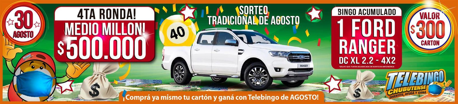 El Telebingo Chubutense sortea dinero en efectivo y una camioneta Ford Ranger