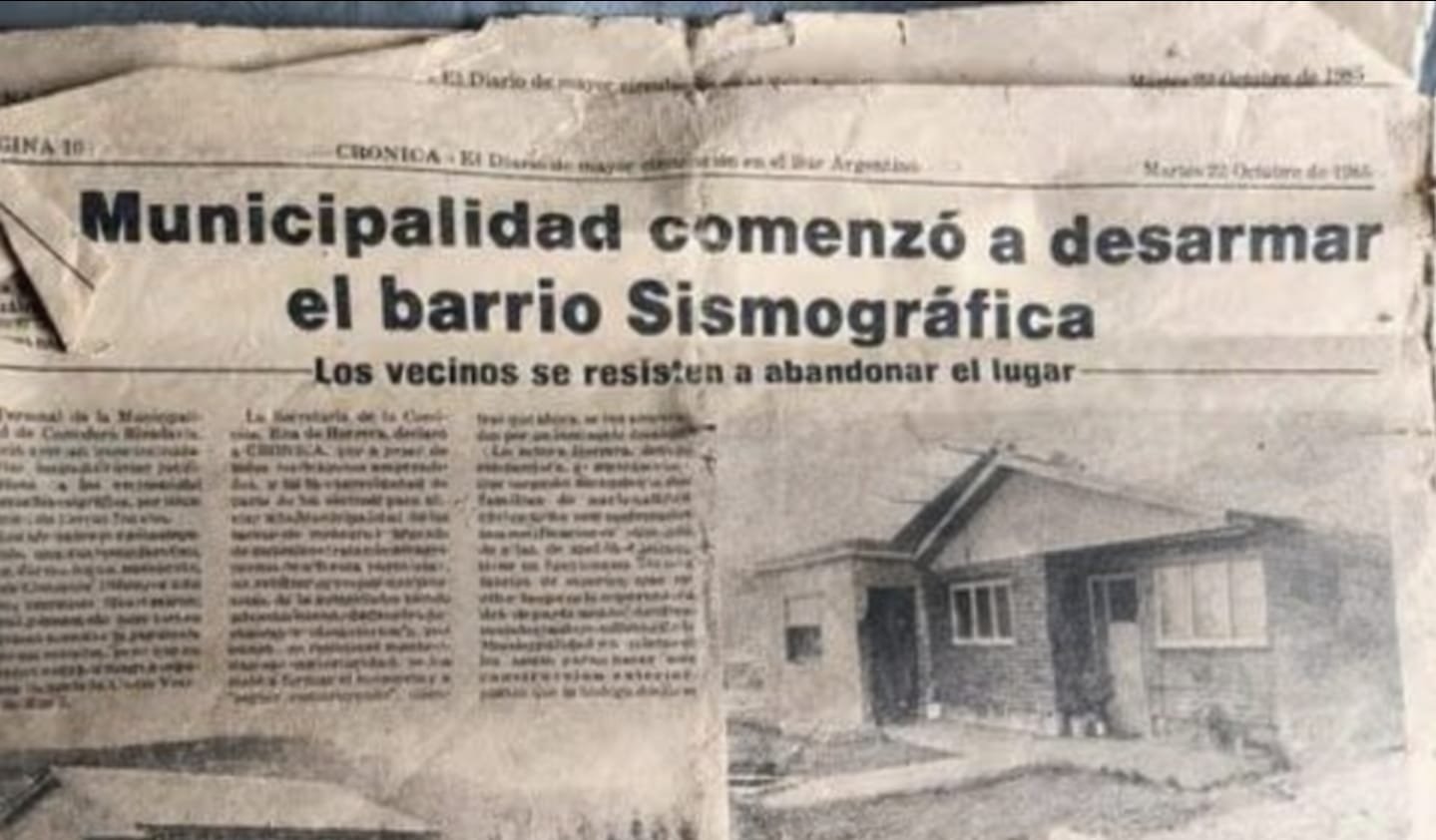 El 22 de octubre de 1985, el Diario Crónica informaba que la Municipalidad de Comodoro Rivadavia había iniciado un proceso para desarmar el barrio Sismográfica, luego de notificar formalmente a sus habitantes. En ese momento, el sector estaba ocupado por alrededor de 40 familias organizadas en tres comisiones vecinales, algunas de las cuales llevaban más de 15 años viviendo en el lugar, aunque sin títulos que acreditaran la propiedad de los terrenos.