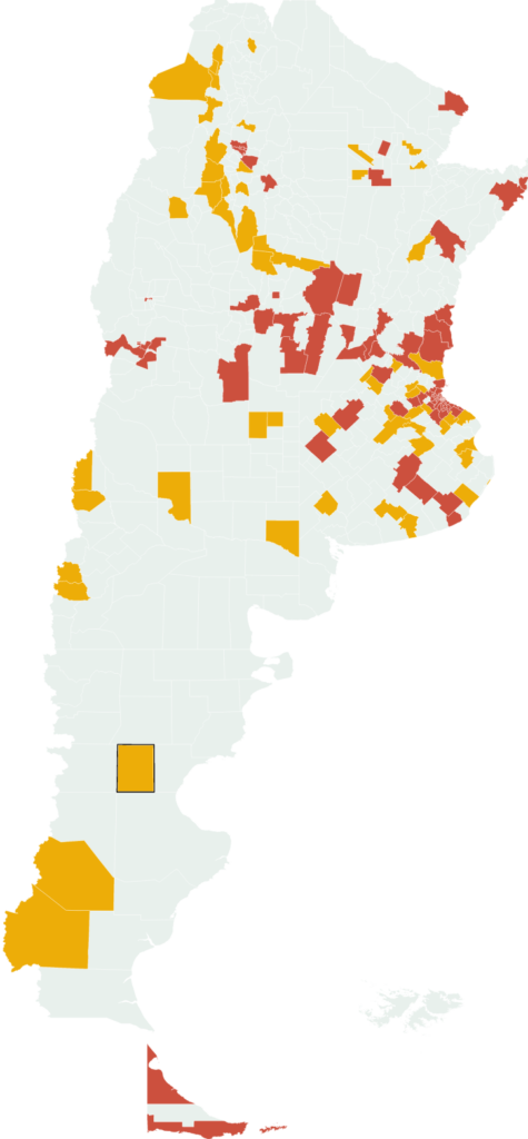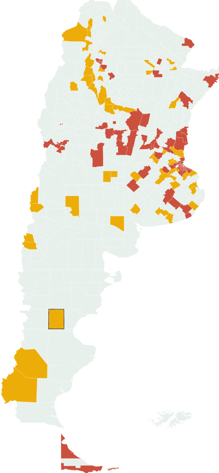 El Ministerio de Salud evalúa la evolución epidemiológica del Coronavirus y elaboró un mapa que reporta lo que se considera el Alto Riesgo. Hace siete dias eran 48 departamentos, ahora se elevaron a 85.