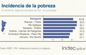 En la últimas horas se publicaron las mediciones de los niveles de pobreza en todo el país durante el segundo semestre de 2021. La patagonia fue la región con menos porcentaje de pobreza. Mientras que Comodoro Rivadavia y Rada Tilly terminaron cuartos en un ranking del Instituto Nacional de Estadísticas y Censos.