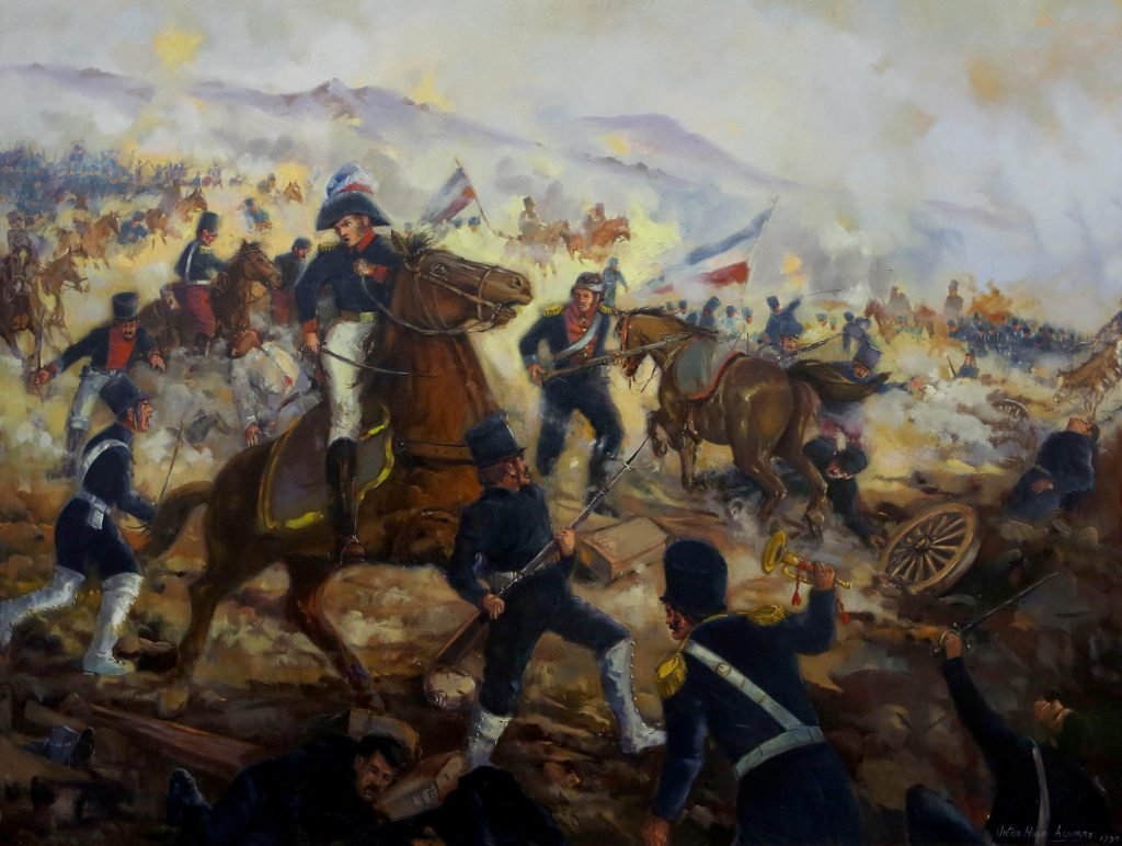 1817 – BATALLA DE CHACABUCO. El Ejército de los Andes, comandado por el general José de San Martín derrota a las tropas españolas en la batalla de Chacabuco, en la hacienda del mismo nombre situada a 55 kilómetros al norte de Santiago de Chile. La victoria de las tropas de San Martin desembocó en la independencia de Chile de la corona española.