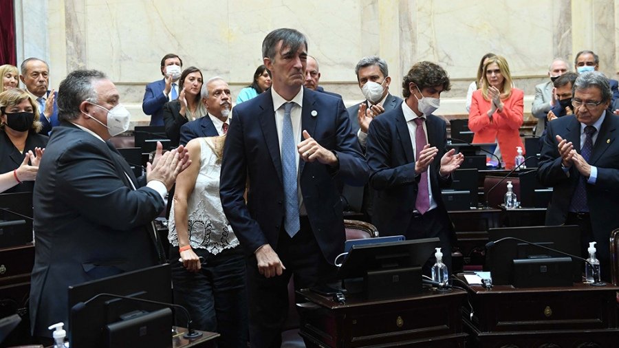 Bullrich fue despedido con un cerrado aplauso de pie por todos los senadores presentes en el recinto, y rodeado de sus siete hijos, algunos de los cuales también sollozaban en el hemiciclo del Senado.