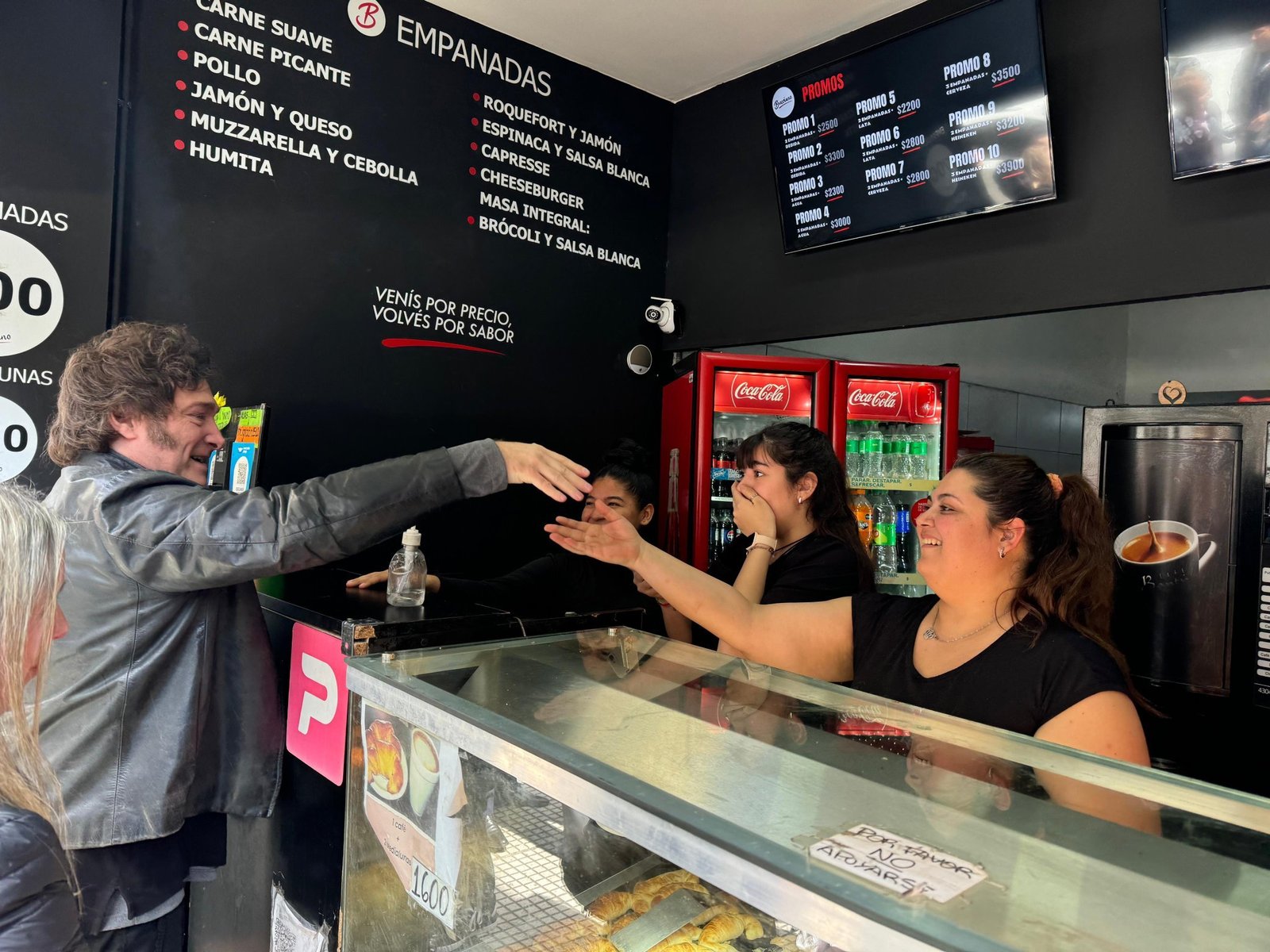 A modo de agradecimiento por la buena voluntad de los empleados del lugar, este jueves Javier Milei se dirigió a la zona y visitó el negocio a fin de agradecerles por haber ayudado al joven. Fue una sorpresa para los trabajadores, que no se esperaban la llegada del jefe de Estado y reaccionaron anonadados antes su presencia.
