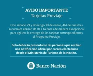 Desde la entidad bancaria emitieron un comunicado asegurando que este sábado 29 y domingo 30 de enero 461 sucursales abrirán sus puertas, exclusivamente para realizar el retiro de las tarjetas del programa PreViaje.
