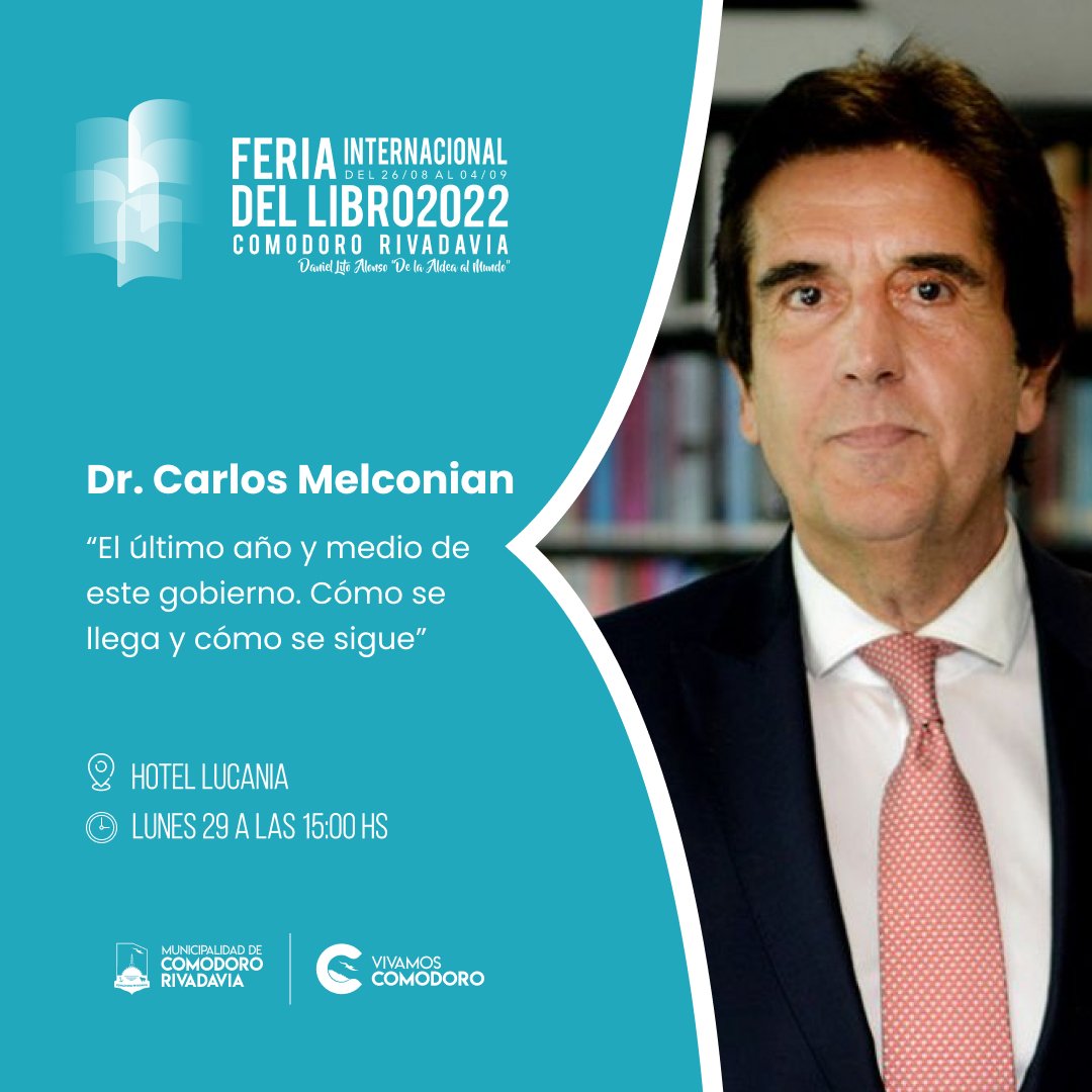 Para las 15:00 se espera la presentación del economista y político argentino, Dr. Carlos Melconian, con la charla «El último año y medio de este gobierno. Cómo se llega y cómo se sigue”, en el Hotel Lucania Palazzo y con entradas gratuitas anticipadas.